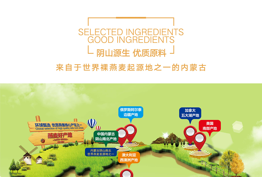 內(nèi)蒙古,世界裸燕麥起源地之一;陰山源生燕麥在此初生滿足生長規(guī)律一切所需,高寒、高海拔、日照充足;遵循自然法則,靠天滋養(yǎng),自然生長;