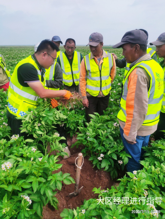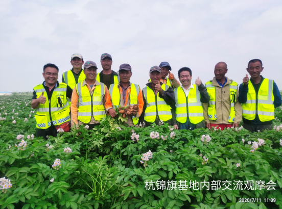 (通訊員 宋江江)2020年7月11日,民豐種業(yè)杭錦旗農(nóng)場組織開展內(nèi)部觀摩交流活動?;顒佑纱髤^(qū)經(jīng)理、農(nóng)藝師、管理員、基地經(jīng)理、機手等13人參加,在大區(qū)經(jīng)理門大偉的帶領(lǐng)下大家對各地塊馬鈴薯問題進行的探討、研究,針對各基地問題做到早發(fā)現(xiàn),早溝通,早預(yù)防,就重大問題進行立項研討并提出改進方案及措施。同時,對管理成就突出的地塊進行現(xiàn)場學(xué)習(xí),共享田間管理方面、經(jīng)驗及做法。