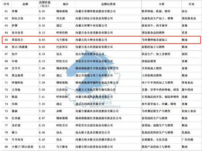 公司注冊有種薯“草原民豐”、鮮薯“敕勒川”和“塞宜德”、燕麥加工系列“陰山優(yōu)麥”等品牌商標,其中“草原民豐”2013年被授予“內蒙古著名商標”,“草原民豐”牌馬鈴薯系列產品2013年被授信為“中國著名品牌”,并榮獲“第十一屆中國國際農產品交易會參展產品金獎”。公司自主選育的馬鈴薯新品種“民豐紅”,被評定為內蒙古“名優(yōu)特”產品,2010年獲“中國民營科技創(chuàng)新成果金獎”,2015年正式通過自治區(qū)品種認定,同年榮獲“自治區(qū)主席質量獎”榮譽稱號。2017 年“民豐種業(yè)、草原民豐、敕勒川、塞宜德、陰山優(yōu)麥”品牌被評為內蒙古農畜牧產品市場領先品牌,2018年榮獲“自治區(qū)優(yōu)秀民營企業(yè)”稱號,2019年“草原民豐”品牌被評為“2019年內蒙古馬鈴薯產業(yè)行業(yè)標志性品牌”,內蒙古品牌價值評估值9.03億元,在內蒙古品牌總榜單排名第65位。2020年在抗擊疫情過程中,被湖北慈善總會、烏蘭察布紅十字會、烏蘭察布橋東社區(qū)等多地授予“愛心企業(yè)”稱號。